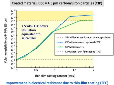 TFCP each particle of which is covered with a smooth and precision-controlled nano-film exhibits excellent electric resistance.