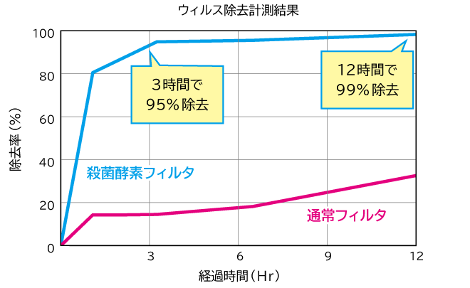 プラズマに殺菌酵素フィルタ・触媒を組合わせることで、室内空気中のガス成分や臭いのほか、ウィルス・カビ・花粉を除去し、病院や公共施設などの室内空気の浄化への適用が期待できます。